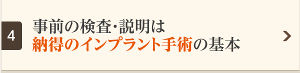 しかし外科手術において100%の確率で成功するということは、現実的にあり得ません。テレビや映画、実際の医療現場でも、手術前には失敗の可能性の説明と、失敗をした場合にも病院側に責任を問わないという旨の同意書が交わされます。これは「100%で成功することはあり得ない」という前提があるからです。インプラント手術も麻酔を打ち、歯茎を切り開く外科手術ですから同じで、100%成功するということはあり得ないのです。もちろん失敗の確率を最小限にするために準備に準備を重ねるのは歯科医師としての常識です。しかしそれでも想定外のことは起こり得るわけで、失敗の確率を0%にすることはできません。